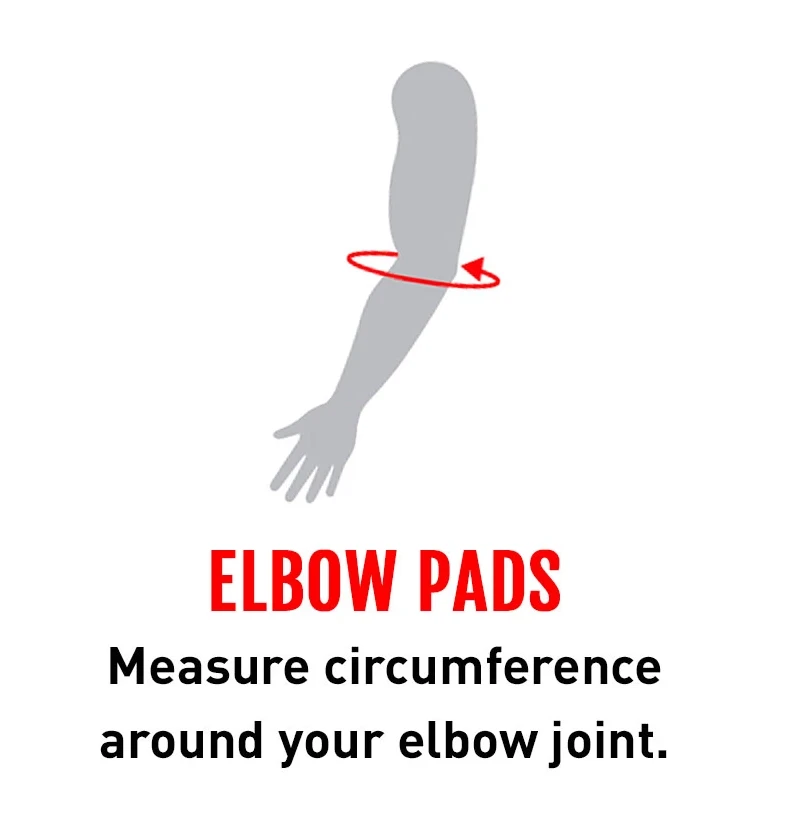 To ensure a perfect elbow pad fit, measure circumference of extended elbow and match to the sizes listed below: