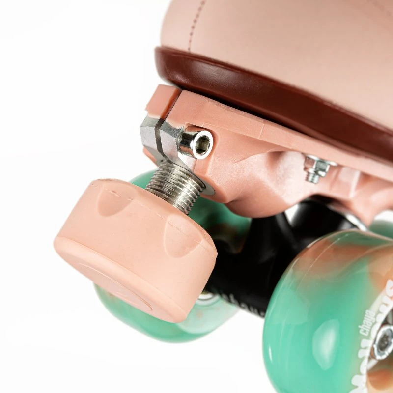 The Melrose Elite in Dusty Rose also benefits from a richly padded high-cut vegan boot for superior comfort and support, Chaya Mellows outdoor wheels (78a, 62mm), WICKED ABEC 7 bearings and our much-loved Chaya Controller toe stop.