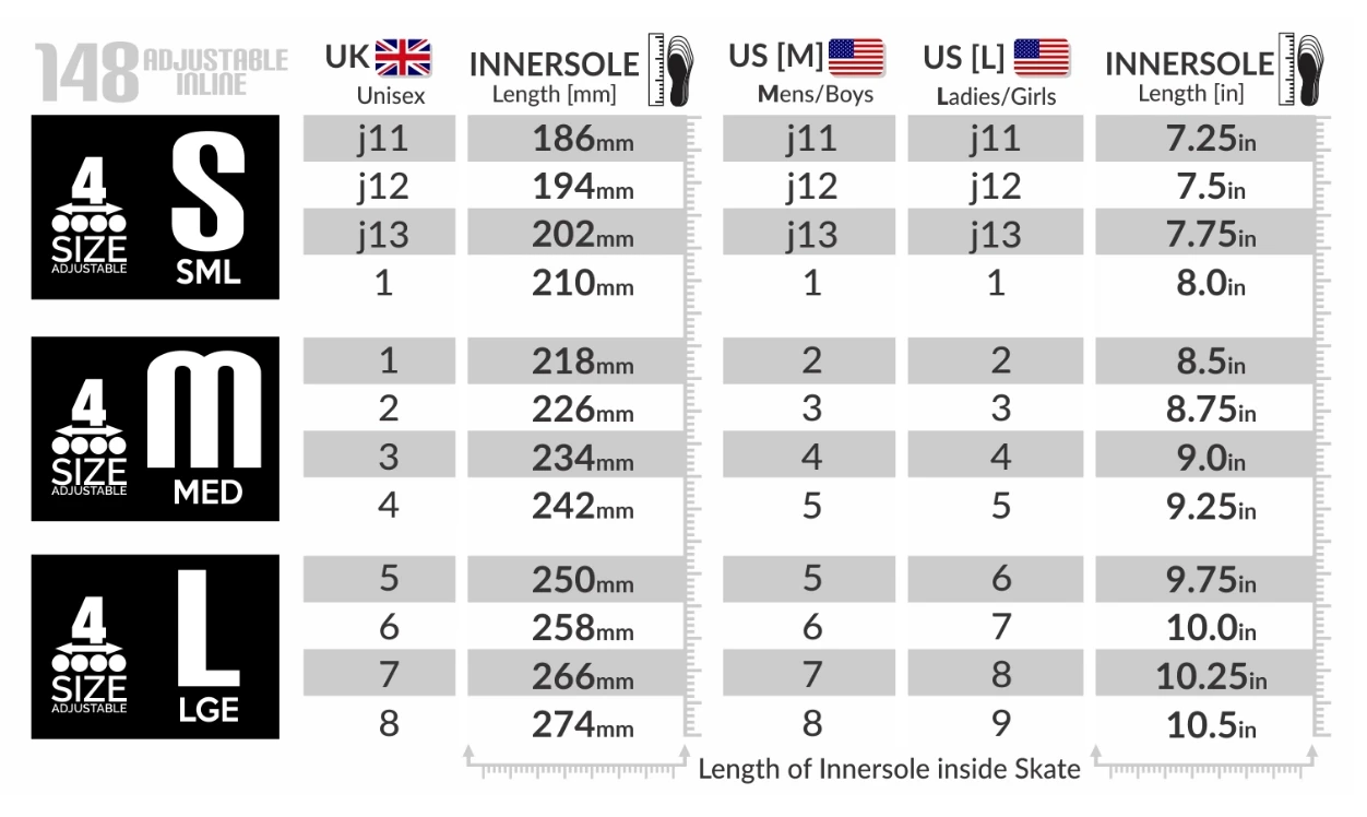 The 148 is a feature packed, high quality inline skate that will be sure to start your LOVE for skating!