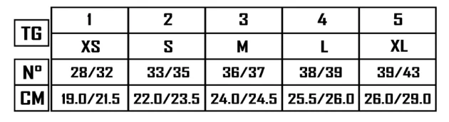 | Size | TG 1 / XS, TG 2 / S, TG 3 / M, TG 4 / L, TG 5 / XL |