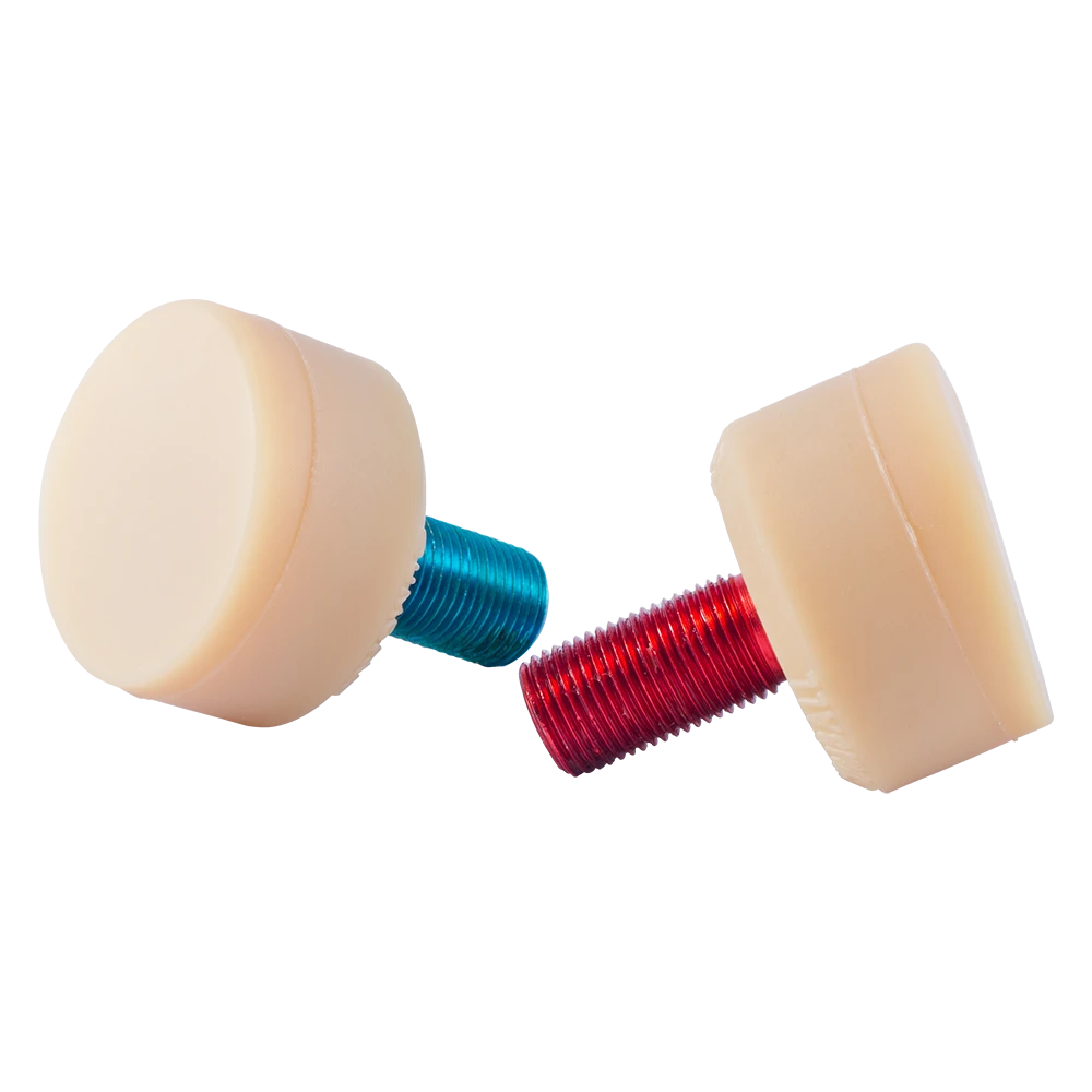 Different surfaces? No problem. Gumball toe stops feature a proprietary rubber blend and classic Gumball shape making them perfect for indoor, outdoor, roller rinks, skate parks, concrete, wood, sports tile, and masonry. Available in an array of fun colours, different hardnesses, and two stem lengths, there is a Gumball toe stop for every skater.