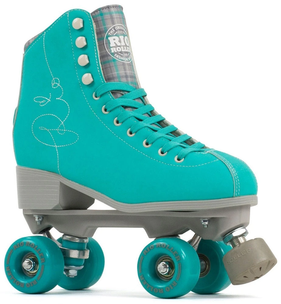 The skates feature the pure rubber adjustable stopper exclusive to Rio Roller and a gorgeous embroidered signature down the side.
